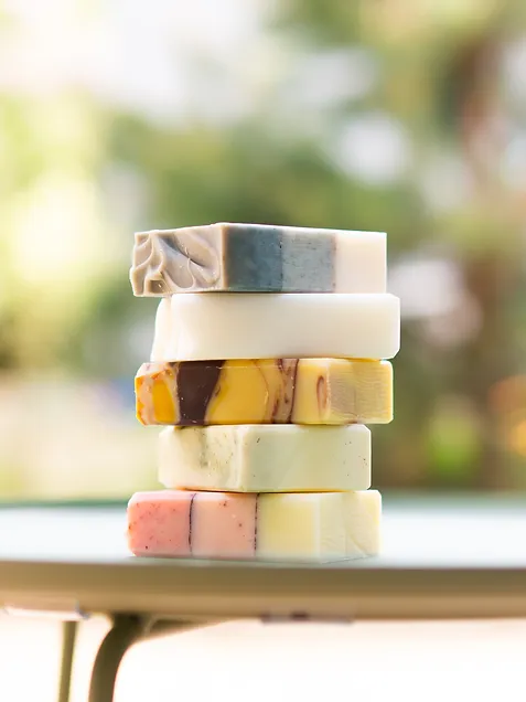 Les savons que je fabrique sont parfumés avec des huiles essentielles et colorés avec des pigments végétaux.